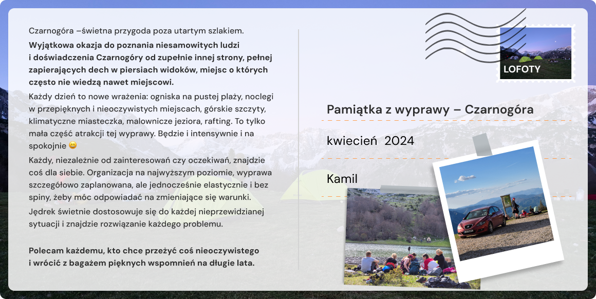 Z solo podróżników tworzymy zgraną grupę, która dzieli radość, wspiera się i wspólnie przeżywa przygodę.